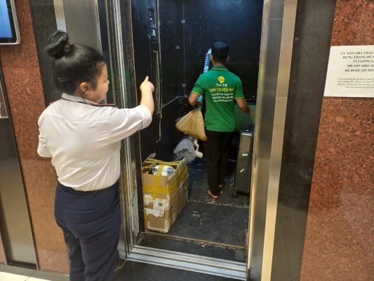 tăng bo hàng hàng xuống thang tải của chung cư theo quy định