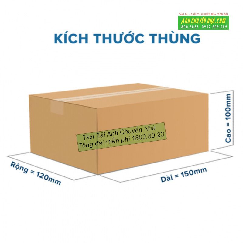 - Loại lớn: Kích thước 610 x 457 x 457 (mm), sử dụng để đóng gói đồ đạc trong phòng ngủ, phòng khách và phòng tắm có khối lượng trên 20kg.